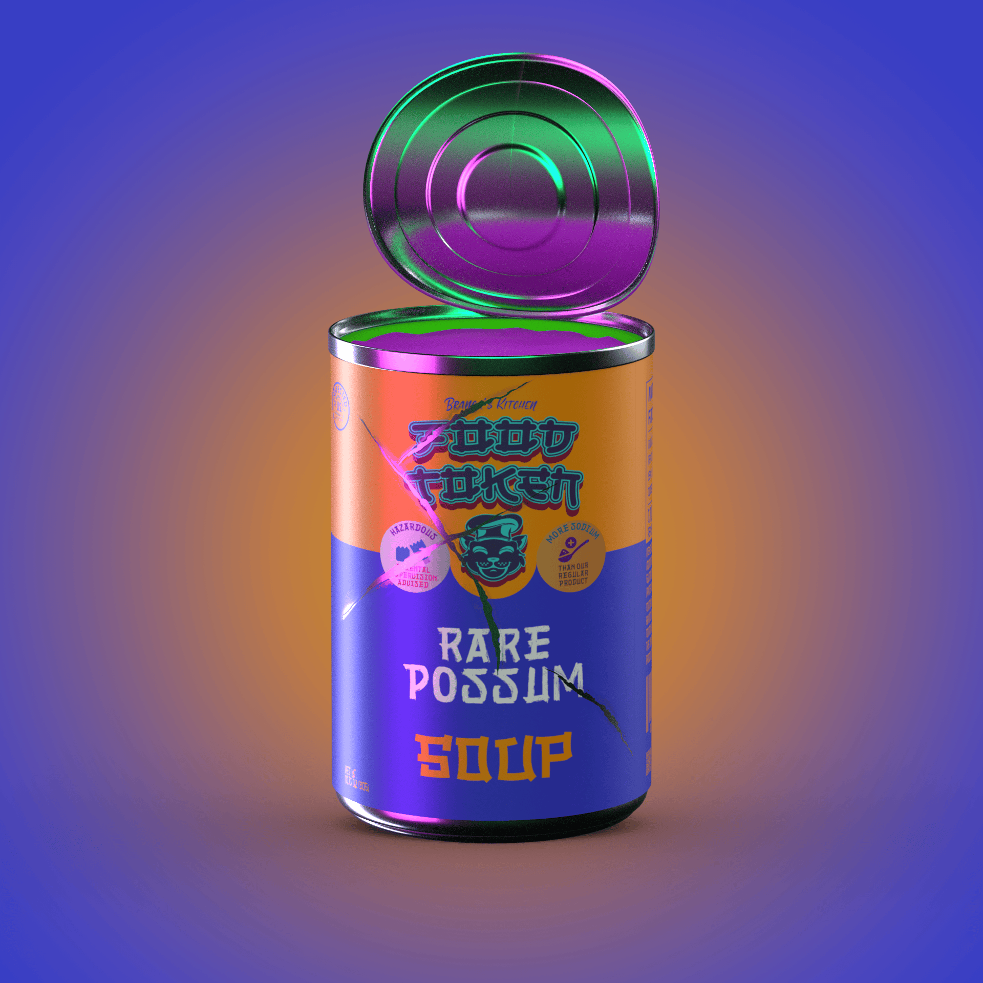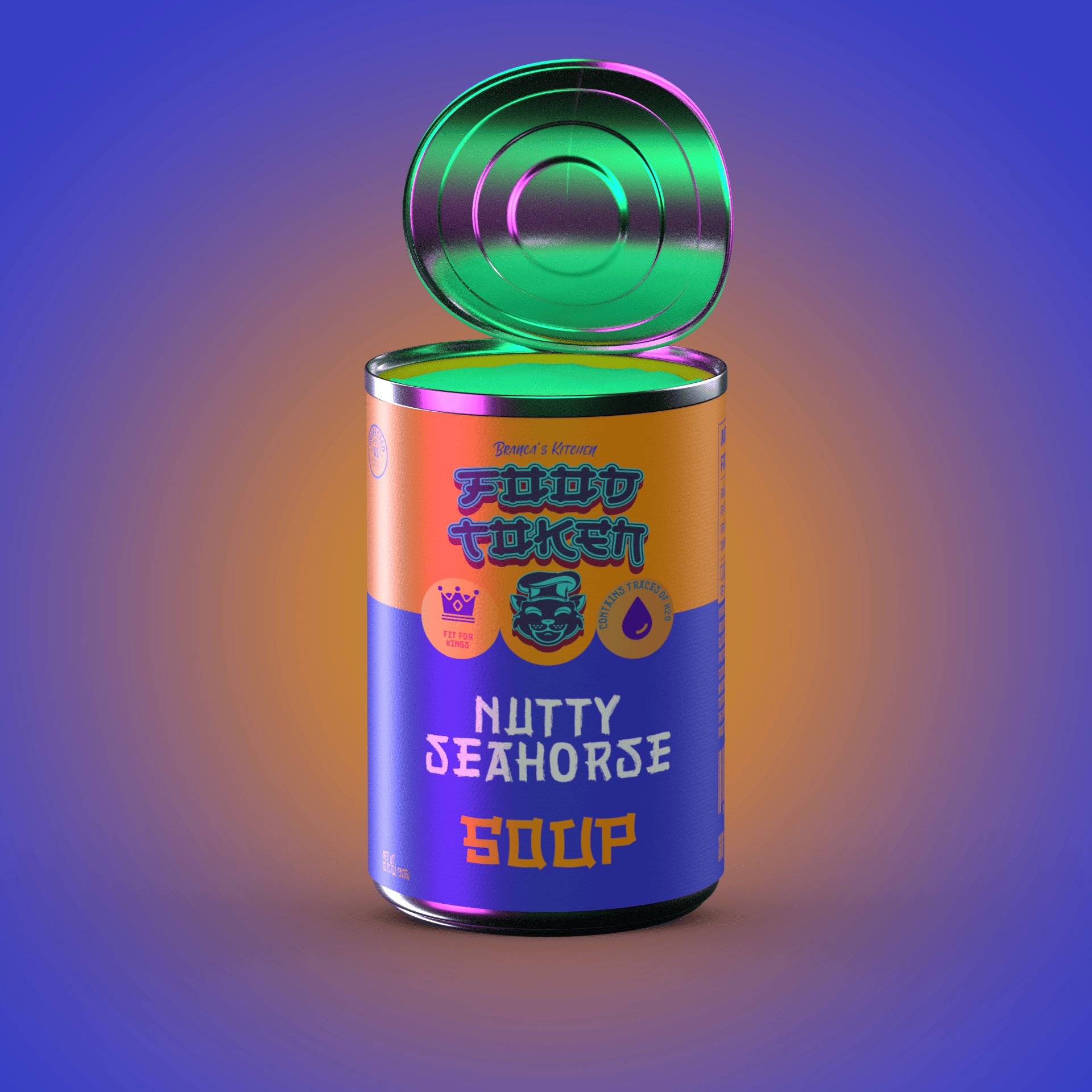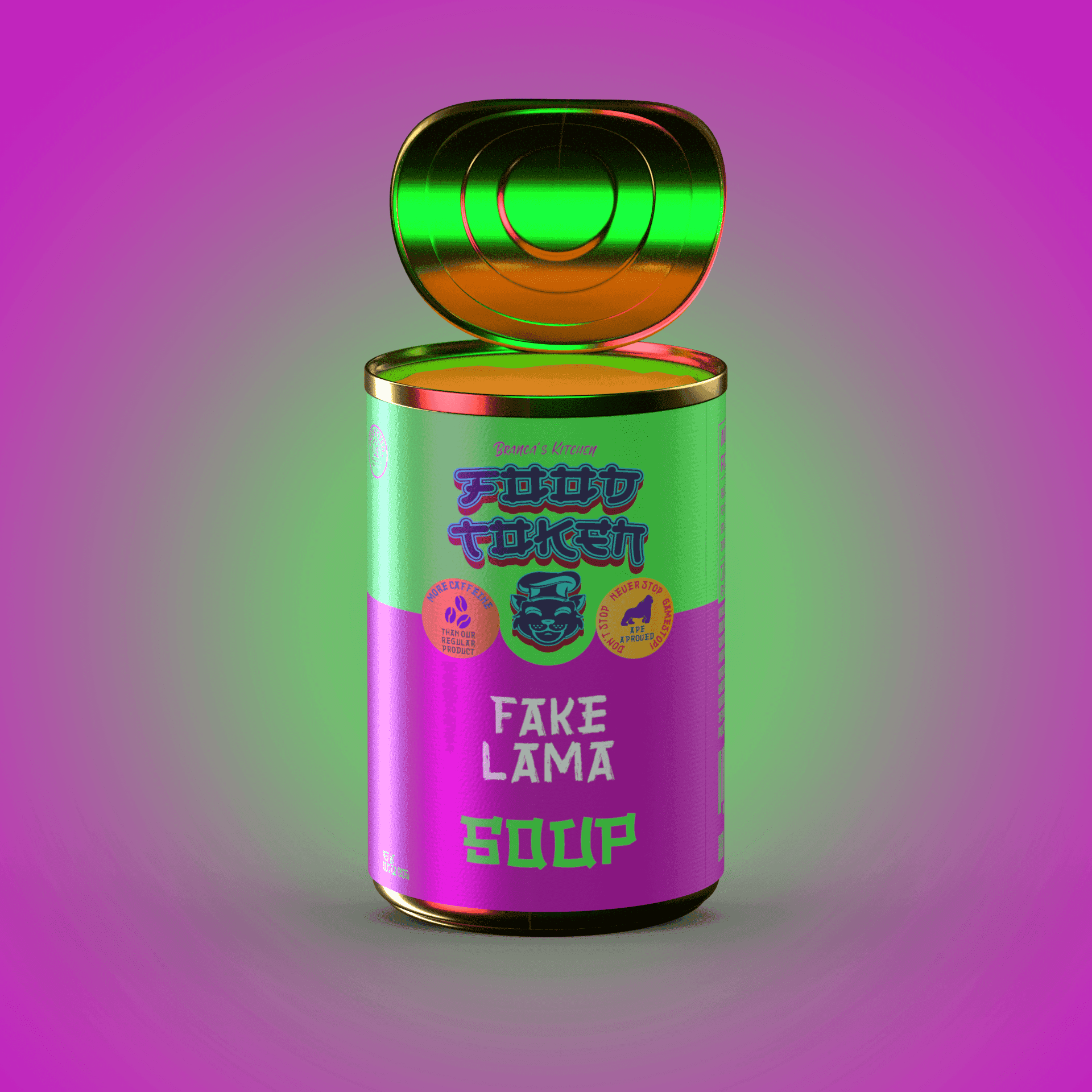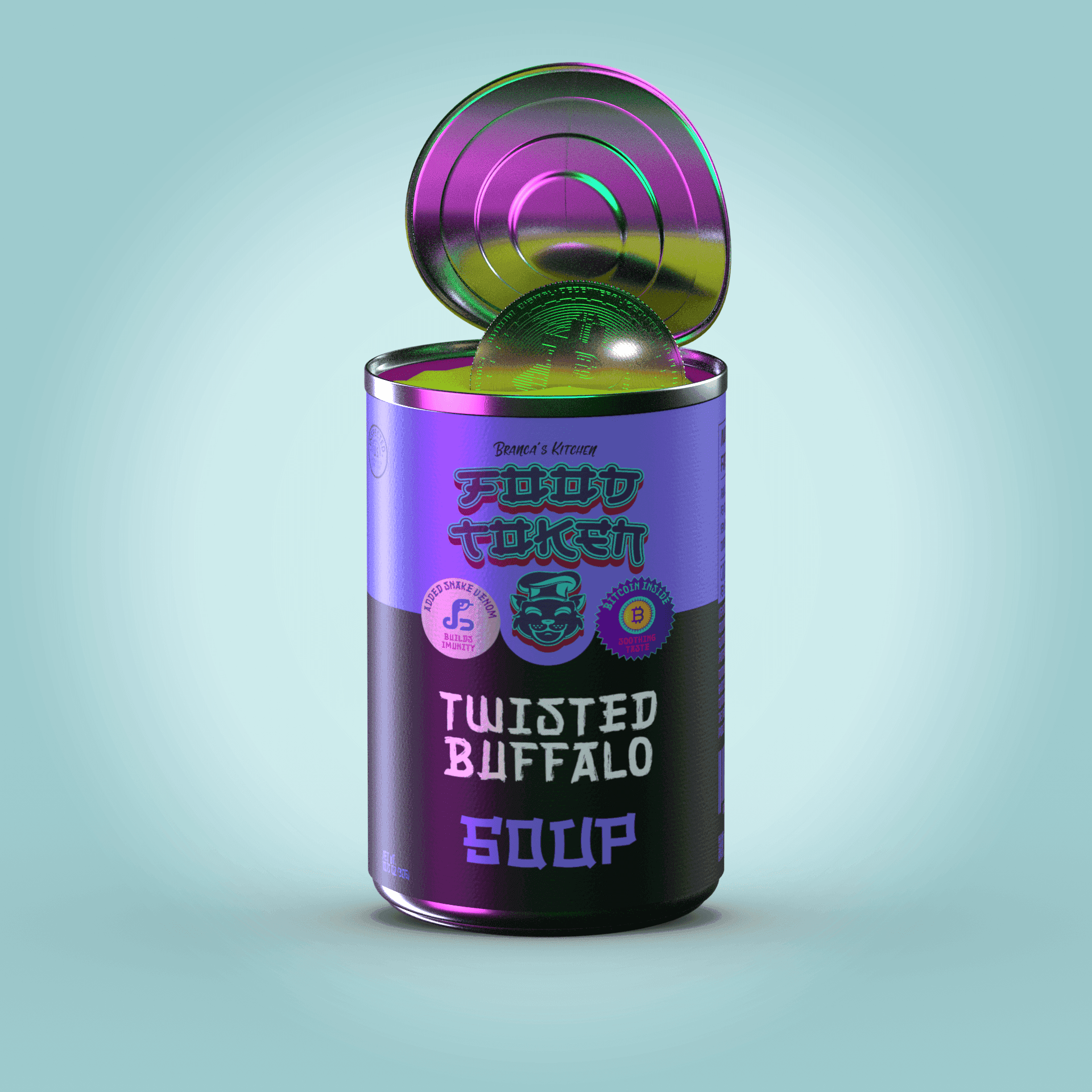 In a second attempt, I rendered 10,000 individual soup cans inspired by Campbell's Soup Cans. Each can was procedurally generated with unique metadata. I also developed a website and a fully gamified Discord server using Python. After dedicating significant time and resources, I had to accept that people were not interested in soup NFTs. If only I had chosen a cute animal instead.