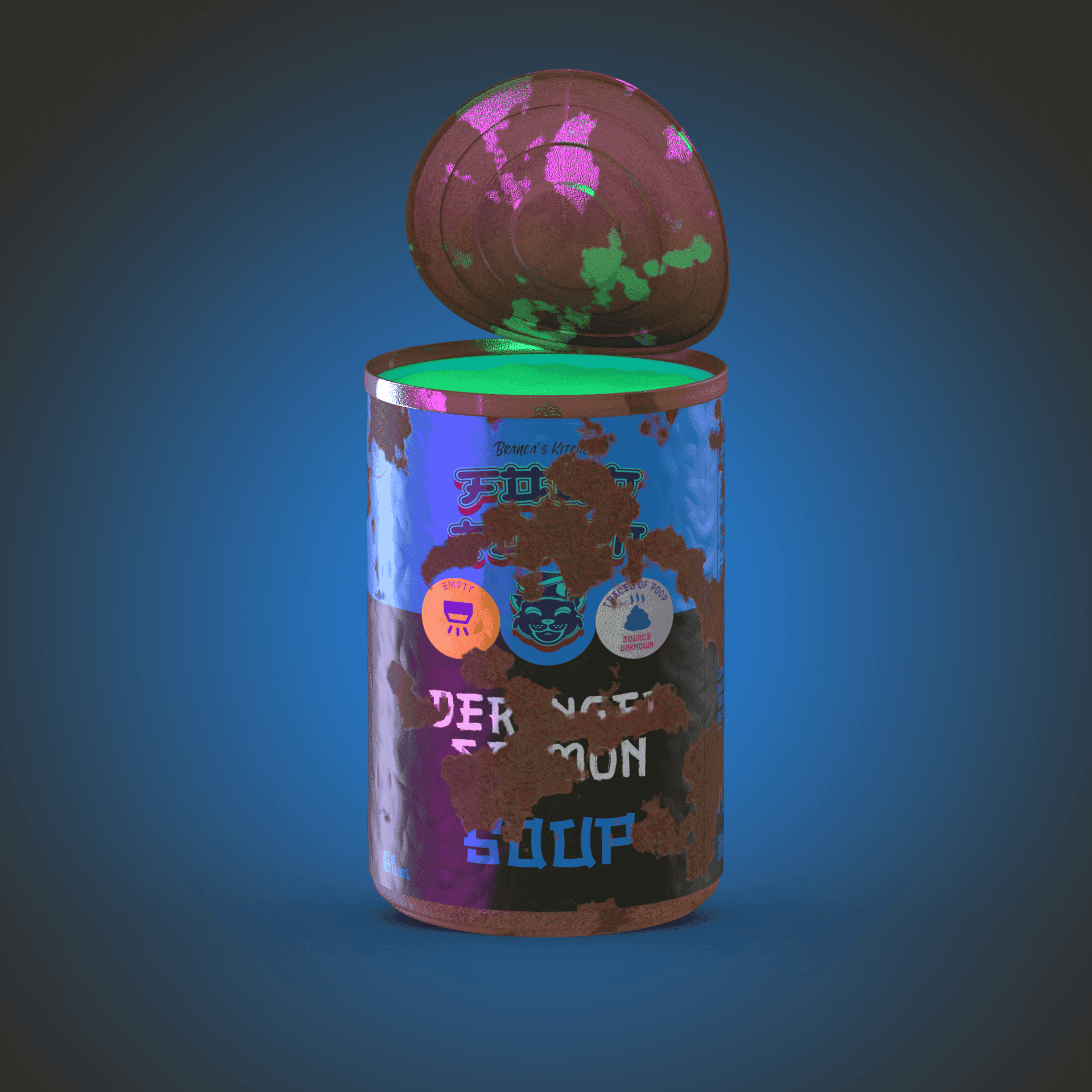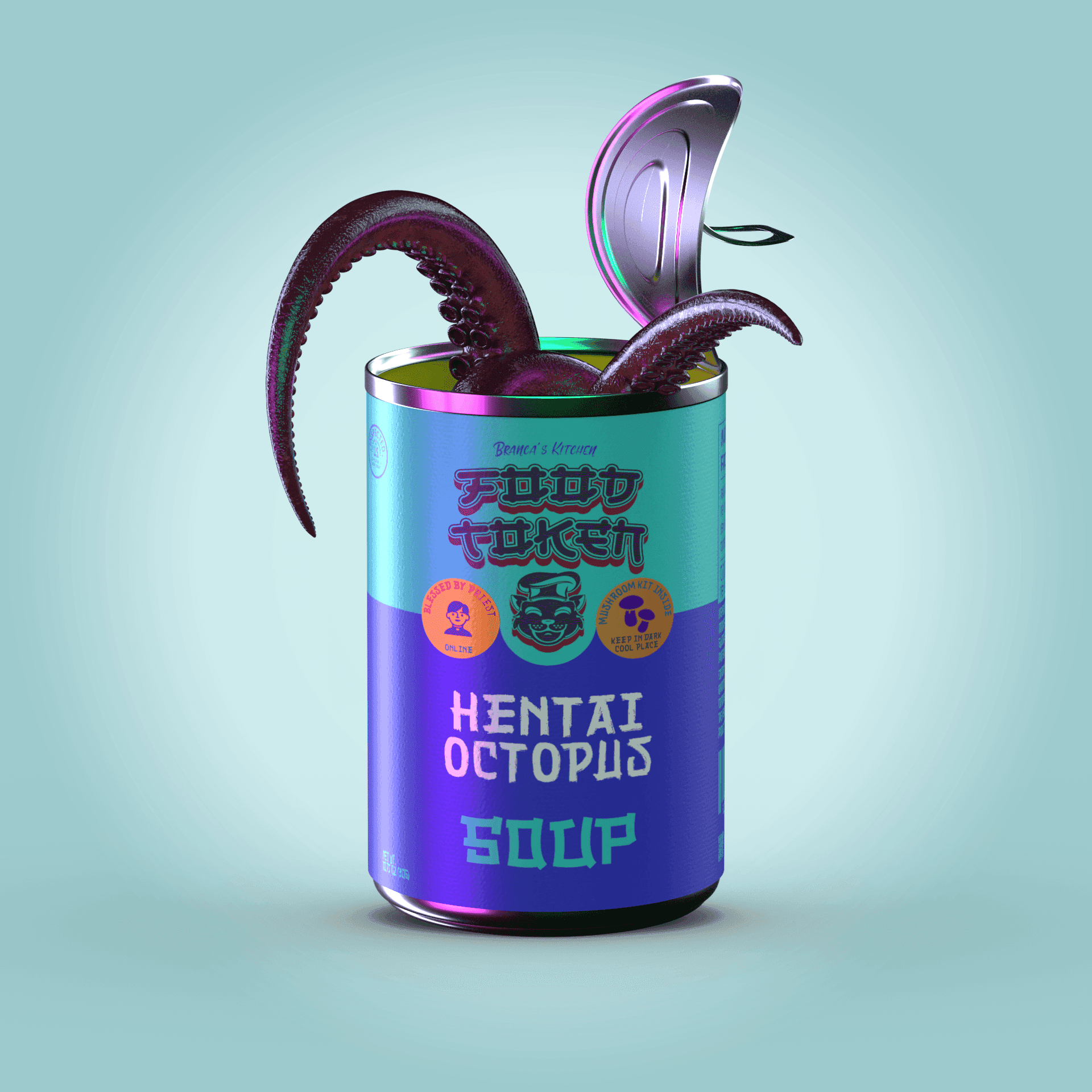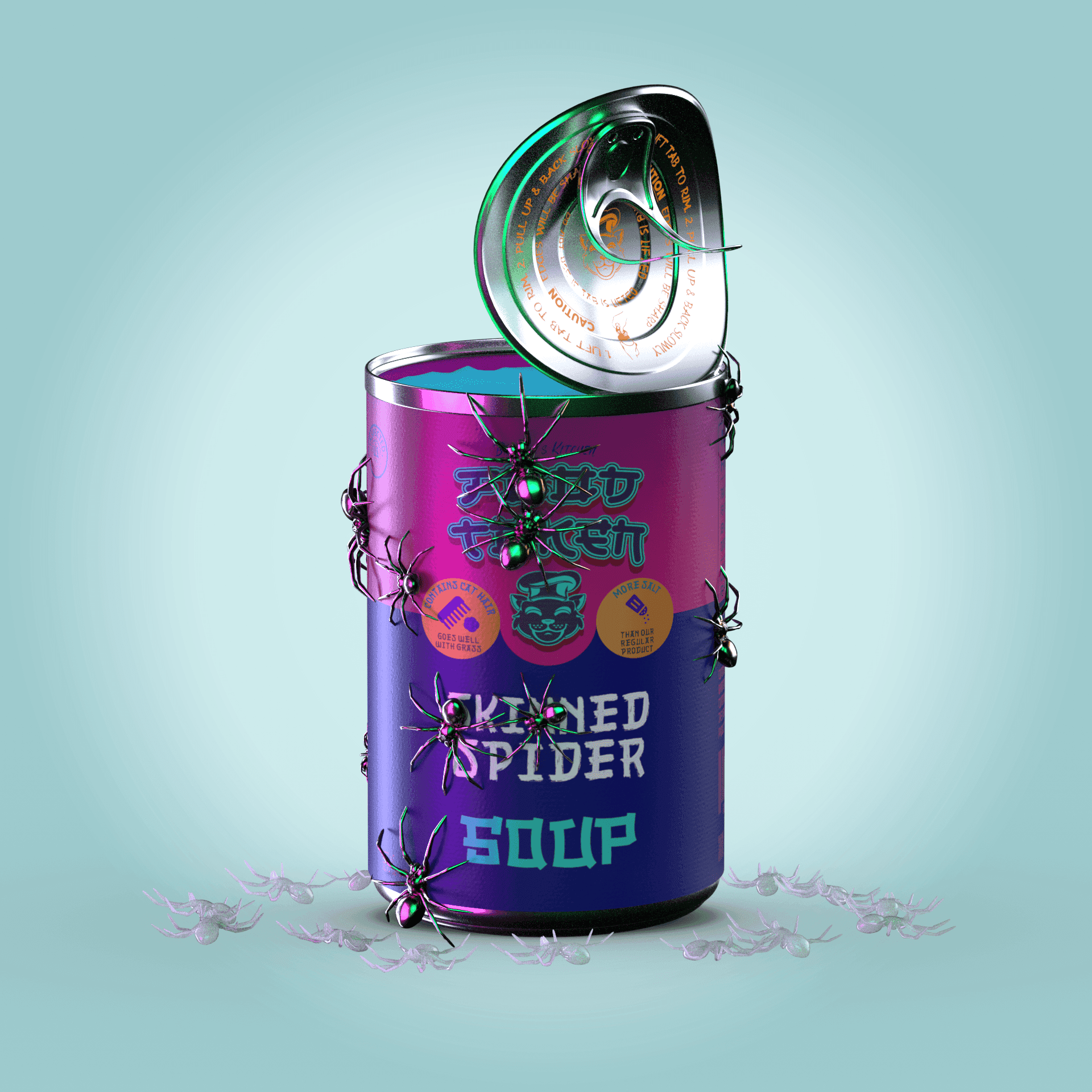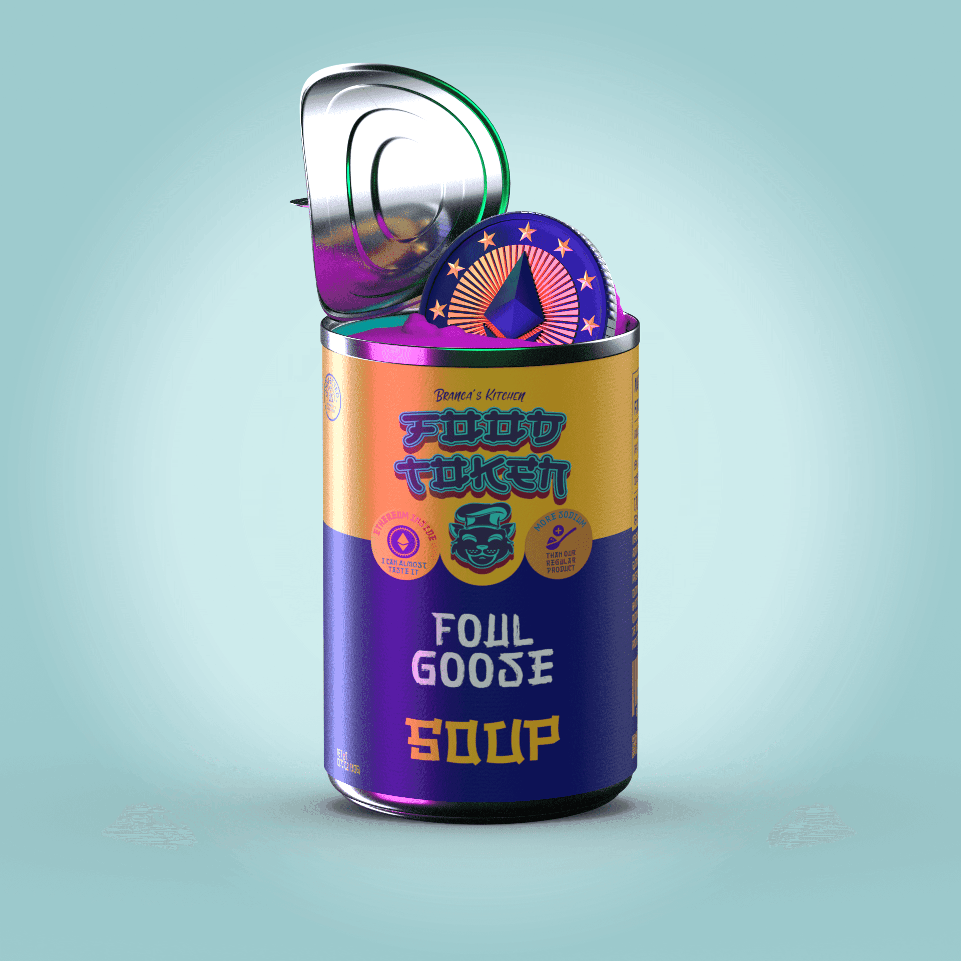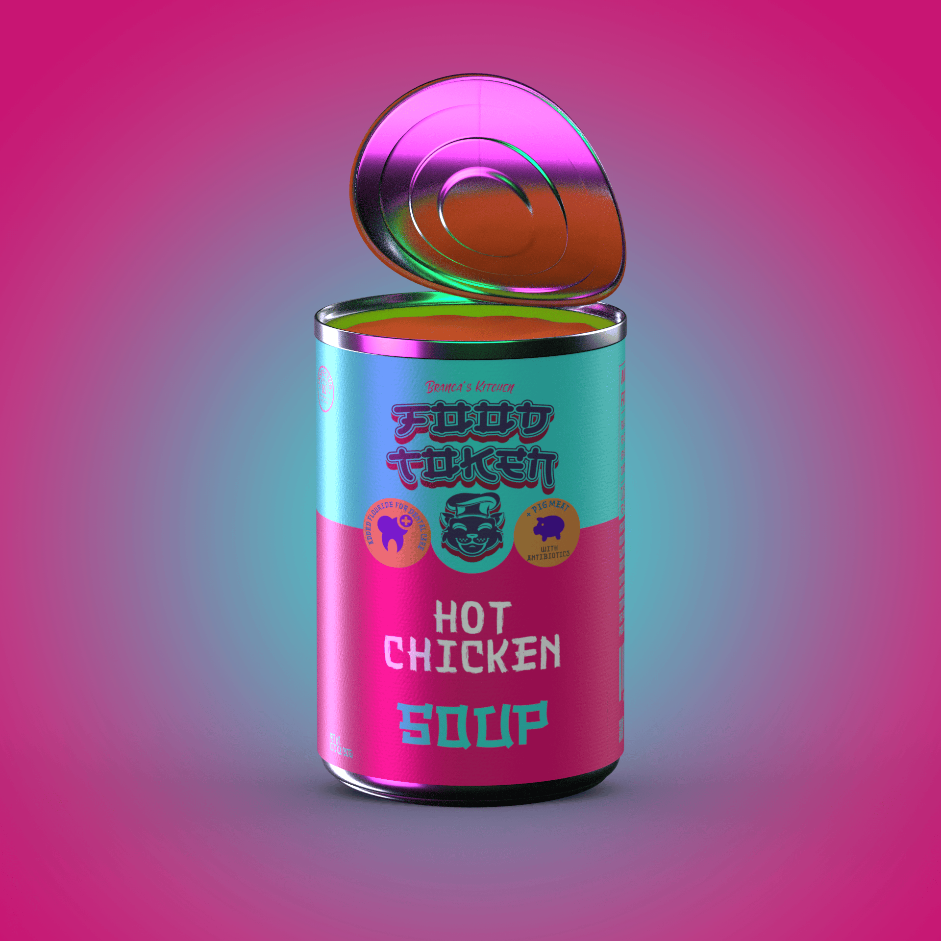 In a second attempt, I rendered 10,000 individual soup cans inspired by Campbell's Soup Cans. Each can was procedurally generated with unique metadata. I also developed a website and a fully gamified Discord server using Python. After dedicating significant time and resources, I had to accept that people were not interested in soup NFTs. If only I had chosen a cute animal instead.